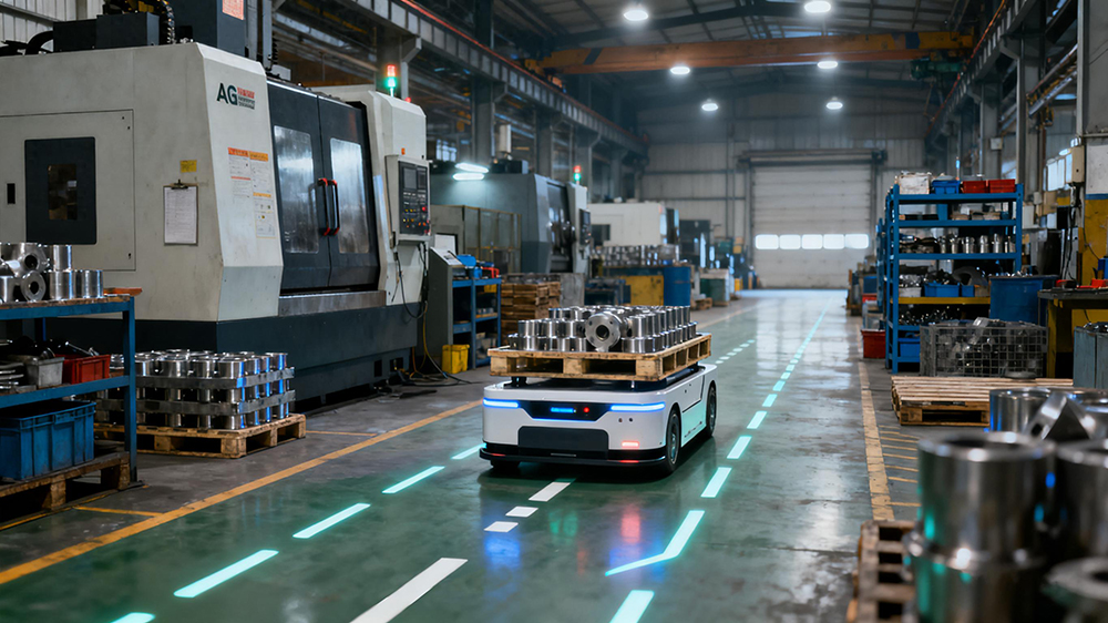 机械加工厂AGV:减人 + 提质,自动化机器人新选择