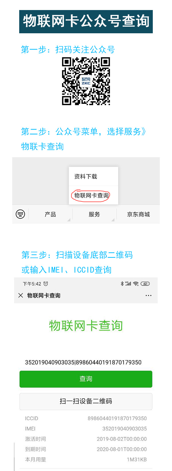 随着物联网卡在移动传媒、监控和监测、医疗健康、车联网、可穿戴设备、智能设备、无线POS机等诸多领域的广泛应用,用户数量逐渐增长。为了方便物联网卡用户快速获取物联网卡ICCID、设备IMEI号码,智谷联官方微信公众号提供物联网在线查询服务,包括查询ICCID、IMEI、激活时间、到期时间、本月用量等。具体操作步骤如下: