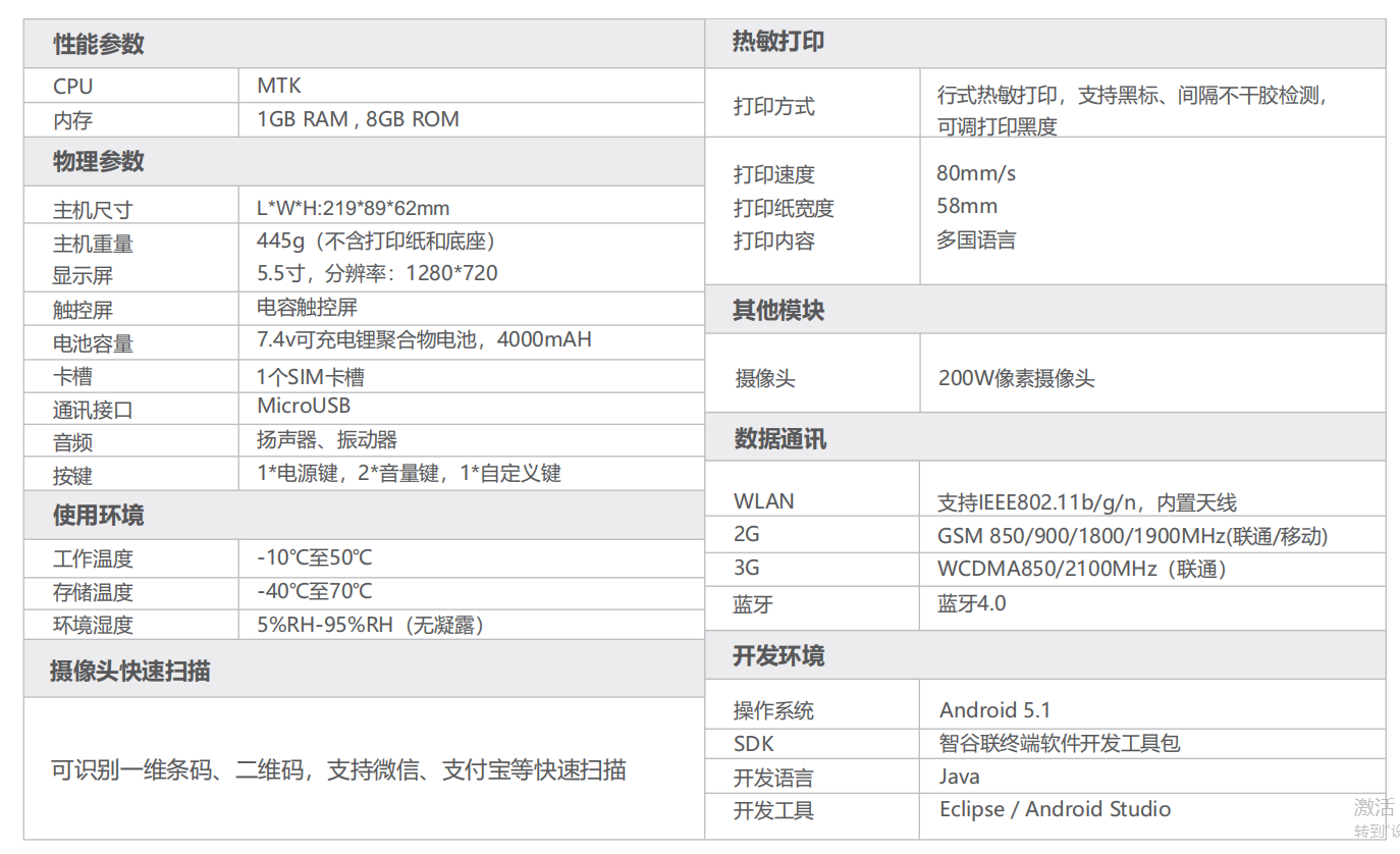ZKC5501手持机产品性能参数如下: