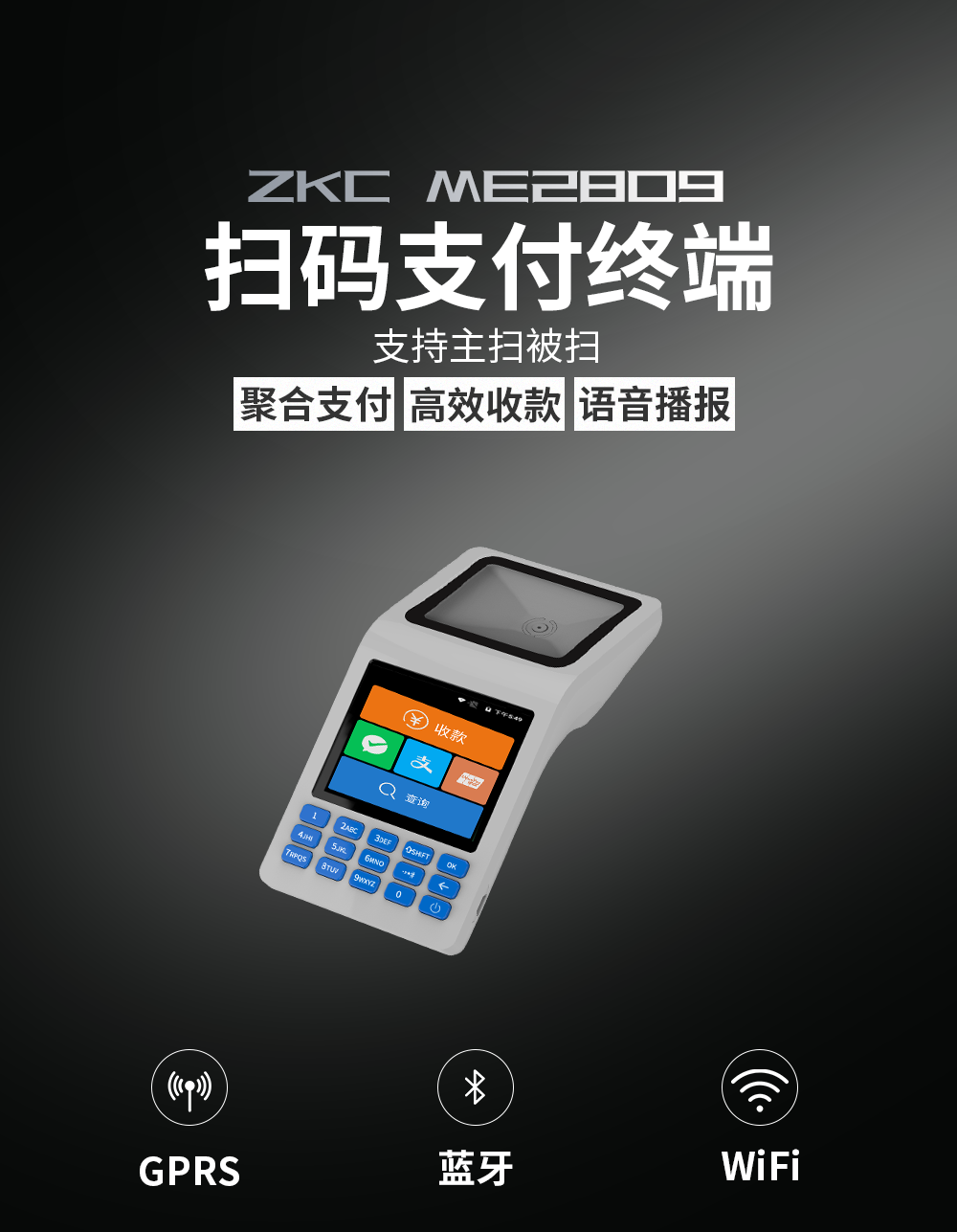 ZKC ME2809扫码支付终端应用特点:
